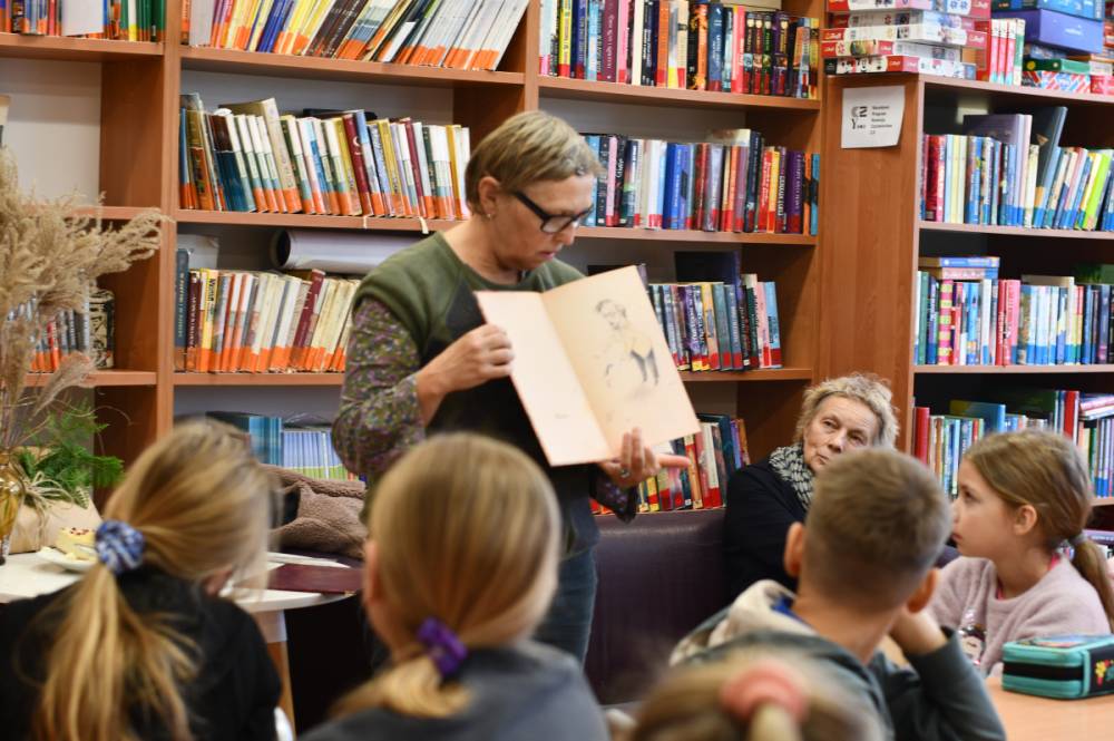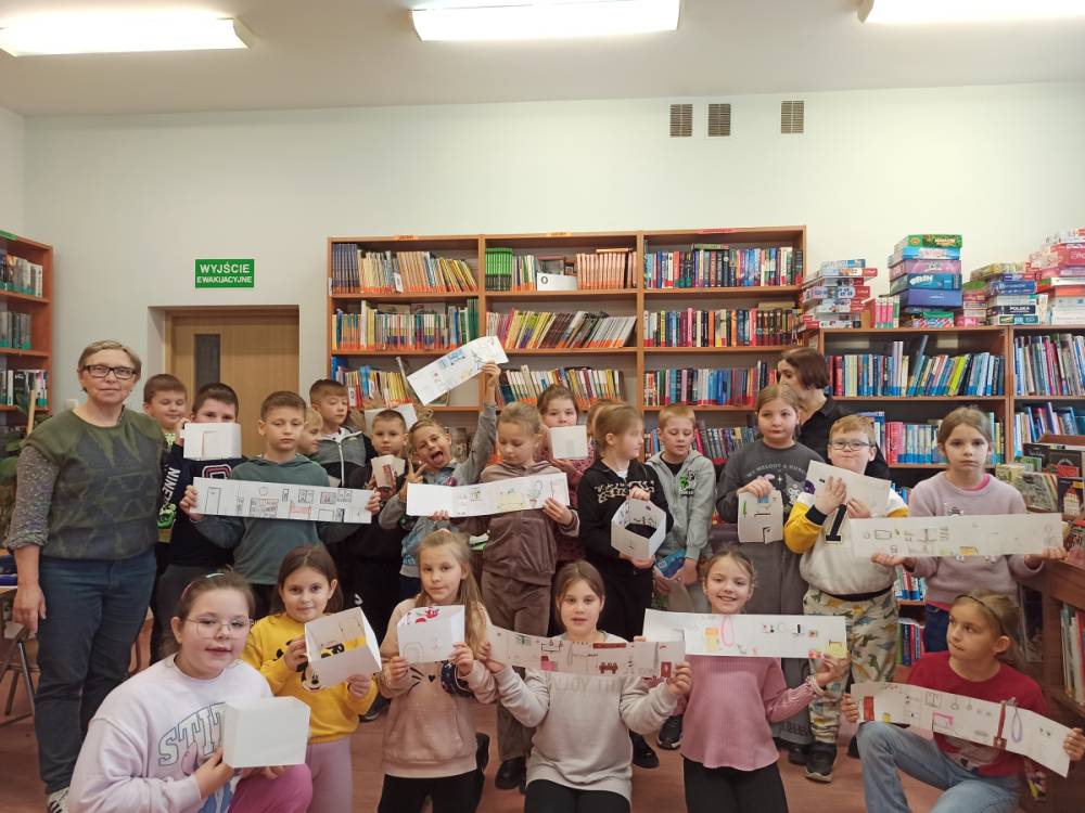 W bardzo typowy, jesienny poniedziałek, 17.11.2025 r., kiedy za oknem było szaro, buro, sennie i deszczowo, do Gminnej Biblioteki Publicznej w Gostycynie na prawie dwugodzinne spotkanie autorskie przybyły uczennice i uczniowie klasy III b wraz z Wychowawczyniami.