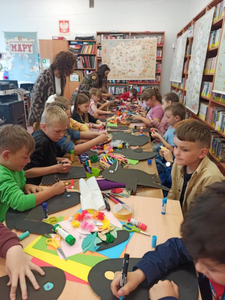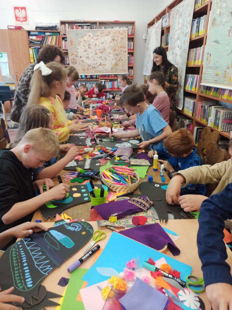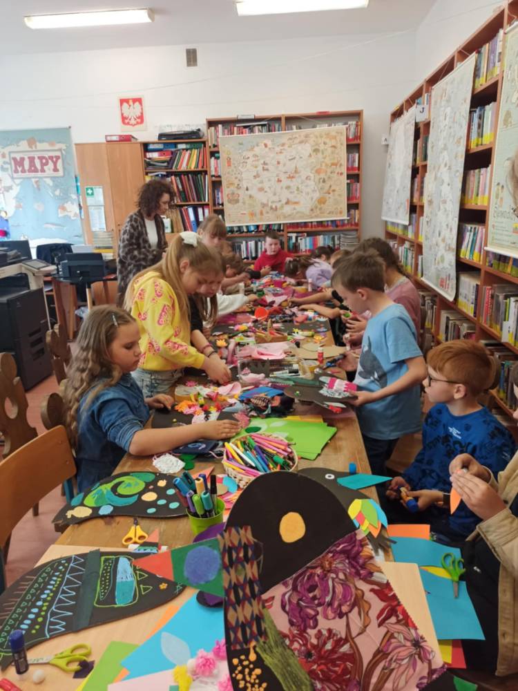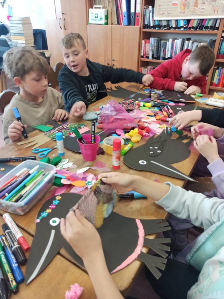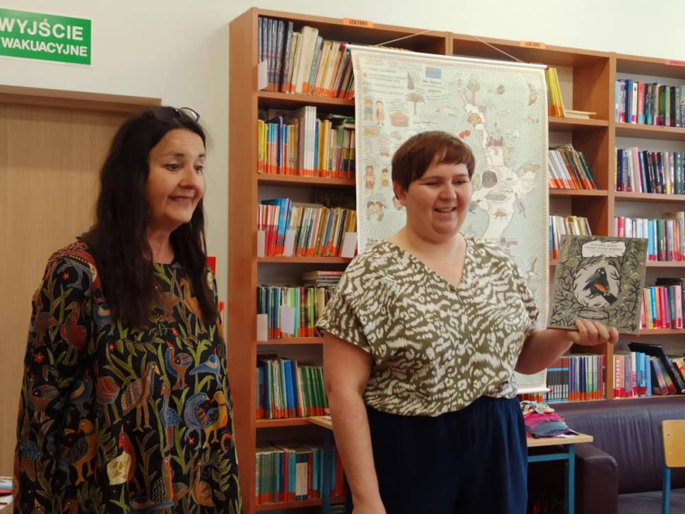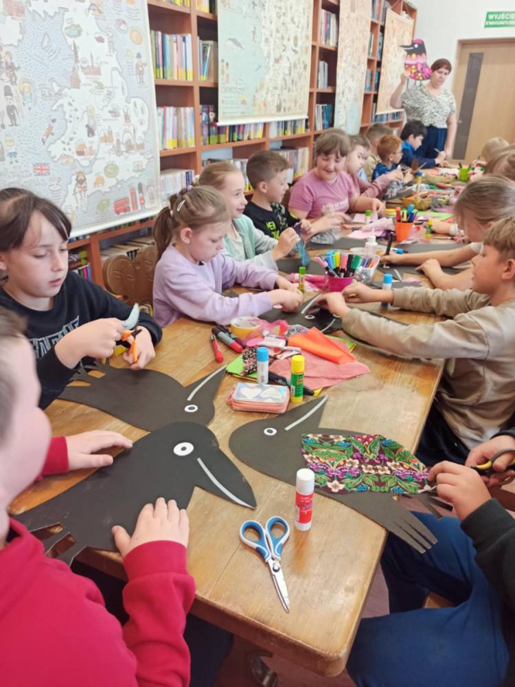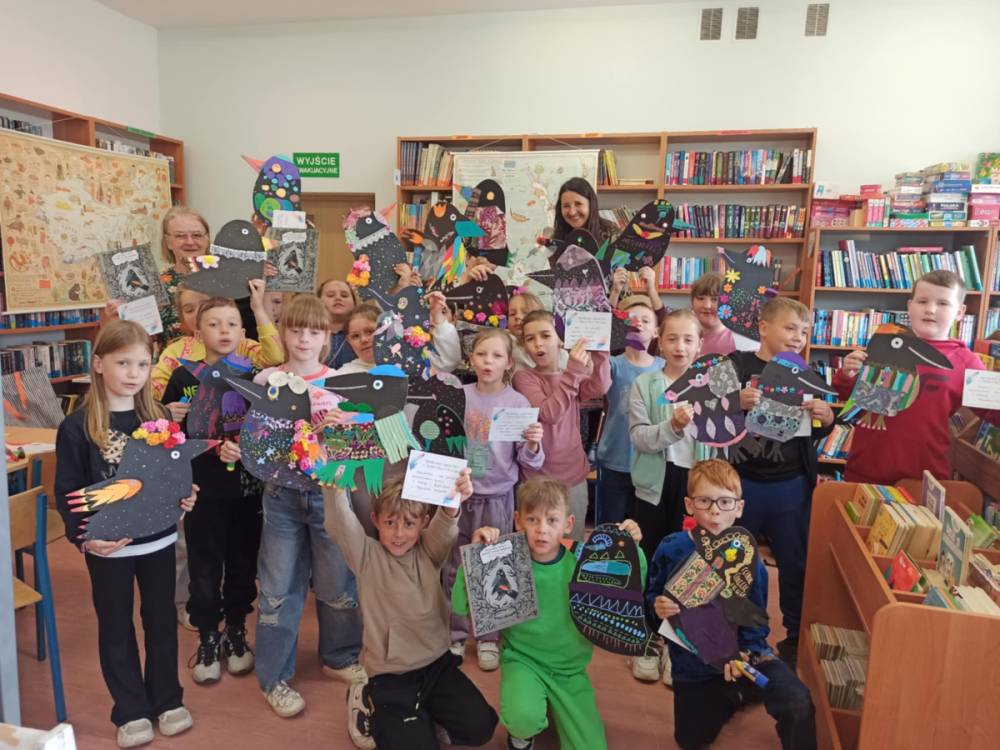 Za nami bajecznie kolorowe spotkanie autorskie i warsztaty z Agnieszką Żelewską, ilustratorką i graficzką komputerową, która odwiedziła bibliotekę w piątek - 16 maja br. Zajęcia z panią Agnieszką zostały oparte o książkę "O kruku, który chciał zostać papugą", nagrodzoną nagrodą Żółtej Ciżemki 2021. Główny bohater powieści - KRUK, ma problem. Z niechęcią patrzy na swoje kruczoczarne pióra, chciałby być inny, kolorowy, egzotyczny.